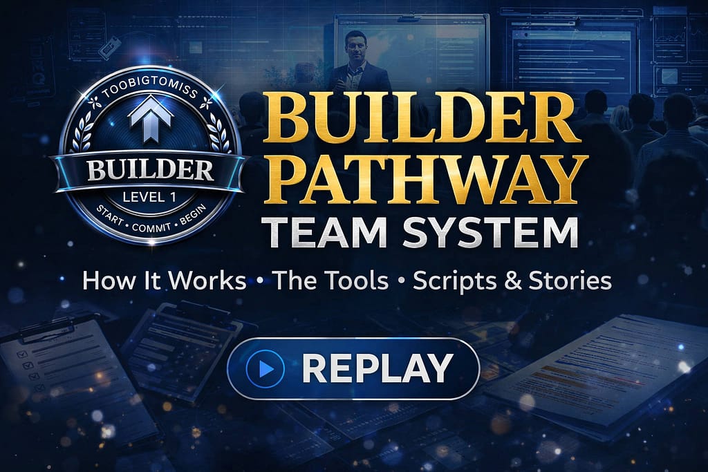 Everything you need to build this business is already in place — the product, the pathway, the tools, and a team that moves with you. This presentation walks you through exactly how the TooBigToMiss system works, what your first steps look like, and why following the Builder Pathway from day one is what separates builders who get results from those who stay stuck.